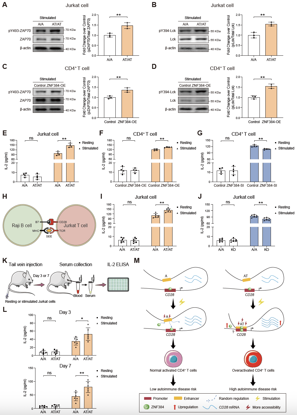 接下来,团队深入揭示了非编码区插入变异rs5837875(A>AT)如何通过刺激响应性机制调控CD28基因表达,进而促进T细胞过度激活的精细分子机制。该综合性和背景依赖策略为破译复杂疾病遗传风险的调控机制建立了一条较为全面而系统的研究途径。