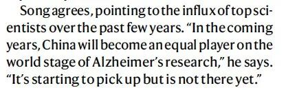 宋伟宏向《自然》强调,中国特别重视扶持年轻、有上升势头的科研人员。“我认为过去五年里,阿尔茨海默病相关研究项目大概投入了10亿元人民币(约1.45亿美元)。”他说。这一投入正在转化为实实在在的科研产出。